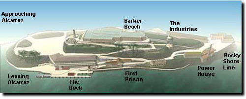 因為 Alcatraz 具有守衛舊金山灣的戰略價值,十一門大砲於 1854 年駐防在島上,到了1860 代早期,島上有一百一十一門大砲,有一些巨砲可以發射重達 450 磅的十五吋砲彈,美軍在1859年於Alcatraz 建立了軍事碉堡。Alcatraz 在軍事上最重要的時期是在美國南北戰爭時期大約從 1861 年到 1865 年之間,因為當時 Alcatraz 是唯一可以保衛舊金山灣區的軍事碉堡。到了 1907年,Alcatraz 因為戰略地位的低落而成為了軍事監獄,然後更在 1934 年成為美國的聯邦監獄,專門監禁最頑劣的罪犯。1963 年  撤離之後,這座島一度無人居住,1969 年時還曾被 Mohawk 印地安人團體佔領。1971年,這座島被納入金門國家公園,世人才得以一窺其當年的面貌。   惡魔島地圖 |