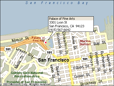 藝術宮及公園不收門票。 探索博物館的地址是 3601 Lyon Street, San Francisco, CA 94123; 電話 (415) 397-5673; 門票:成人(18-64歲) US$10,六十五歲以上及學生(有學生證) US$7.50,兒童五至十七歲及殘障人士US$6,四歲以下免費,可以使用City Pass。 開放時間:夏天〈由國殤日到勞工節〉每天早上10:00至下午6:00,星期三延至晚上9:00,七天開放。冬季〈由勞工節到國殤日〉每天早上10:00至下午5:00點,星期三延至晚上9:00,星期一及聖誕節關閉(例假日除外) 。 交通:藝術宮和旁邊的探索博物館鄰近海港區〈Marina District〉,可乘搭 San Francisco Muni buses #30, #43, #28 and #29, Muni bus lines #22, #41 及 #45 路巴士抵達。 相關連結: 探索博物館〈Exploratorium〉官方網站