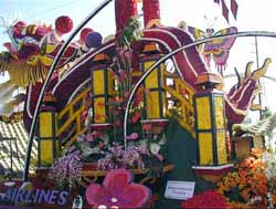 華航自1987年開始參加玫瑰花車大遊行,曾經十三度獲獎。去年華航花車的主題「夢想台灣」,就曾經獲得國際首獎。回顧過去五年來,華航花車連續五屆獲得玫瑰花車遊行的國際花車獎,是這項世界盛會最受矚目的國際參與者。這五次得獎的花車主題,包括1999年的「鳳求凰」、2000年的「千禧金龍」、2001年的「中國城」、2002年的「歡樂在台灣」與