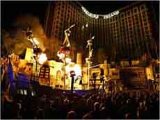 秀每天晚上都會演出,共有四種不同的音樂主題。當秀開始時,附近所有的商家都會將燈光放黯,超過兩百萬盞表演的燈光隨即開始跟著音樂的節奏閃動。這個拉斯維加斯市中心最著稱的路邊秀長約十分鐘,秀結束後,附近的商家會將燈光重新打開。 拉斯維加斯大道上 星際迷航經驗〈The Star Trek Experience〉 如果你是星際迷航的影迷,請一定不要錯過這個位於拉斯維加斯希爾頓 Las Vegas Hilton 的博物館及遊樂場。 金銀島〈Treasure Island〉 在這間旅館的大門前,每晚六、八及十點各上演一場海上女妖秀〈Sirens