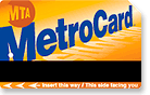 在紐約無論乘搭那一條路線的地鐵,只要不出車站,所有的地鐵任你坐,不用另外收費。另外要注意的是,售票亭的售票員謝絕接受面額超過二十元的鈔票,也不接受一分錢的硬幣。但若你購買面值超過十五元的捷運金卡(Metrocard Gold),則可以使用二十元鈔票,並且會附贈免費搭車一次(一元五角)。凡六十五歲以上者可享受半價車資。(有關半價車資事項,請電 (212) 878-7294; 其他問題,請打(212) 638-7622 紐約市內,紐約市外請打 (800) 638-7622;一個成人最多可攜三名身高未達四十四吋的兒童免費乘搭地鐵。  | | 捷運卡〈MetroCard〉 |